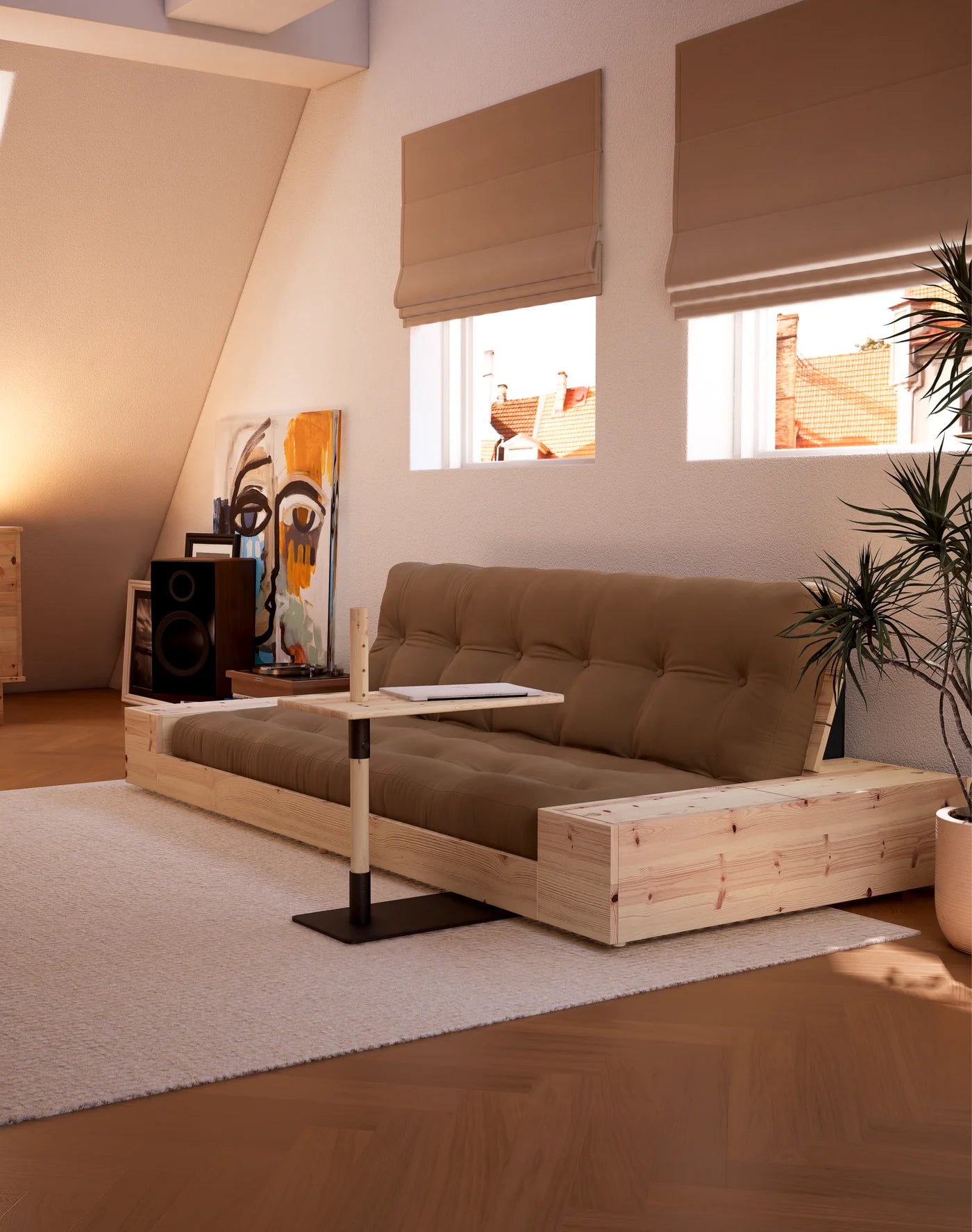 Rozkládací pohovku BASE navrhli architekti z ateliéru C F Møller jako hlavní kus nábytku do menších bytů a studií, kde jeden pokoj zvládá práci, odpočinek i nocování.
