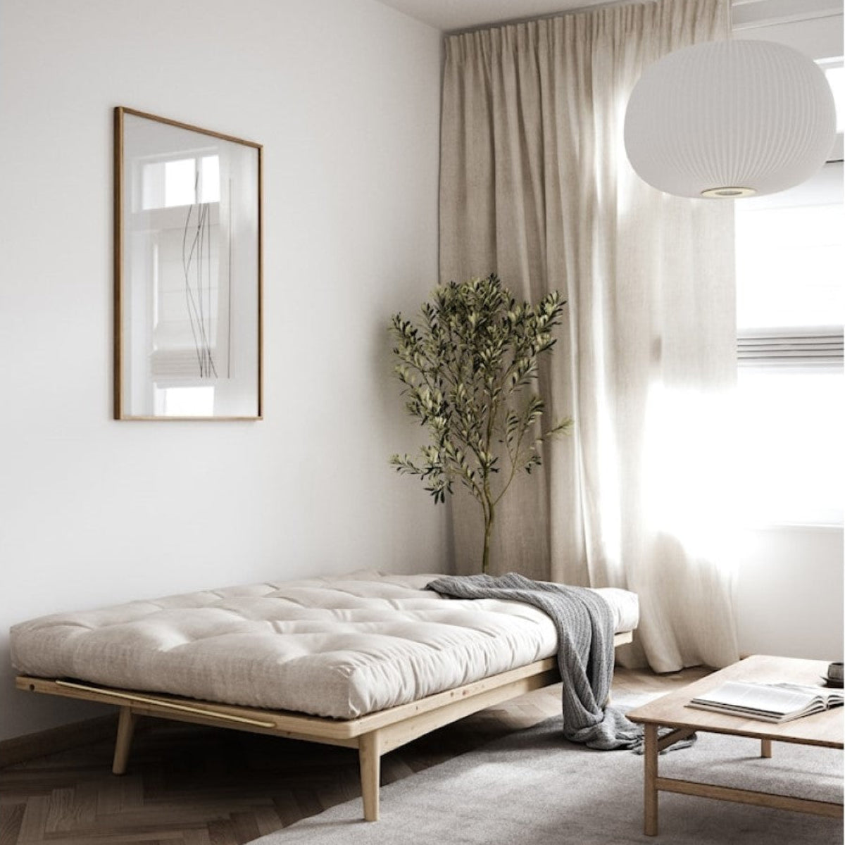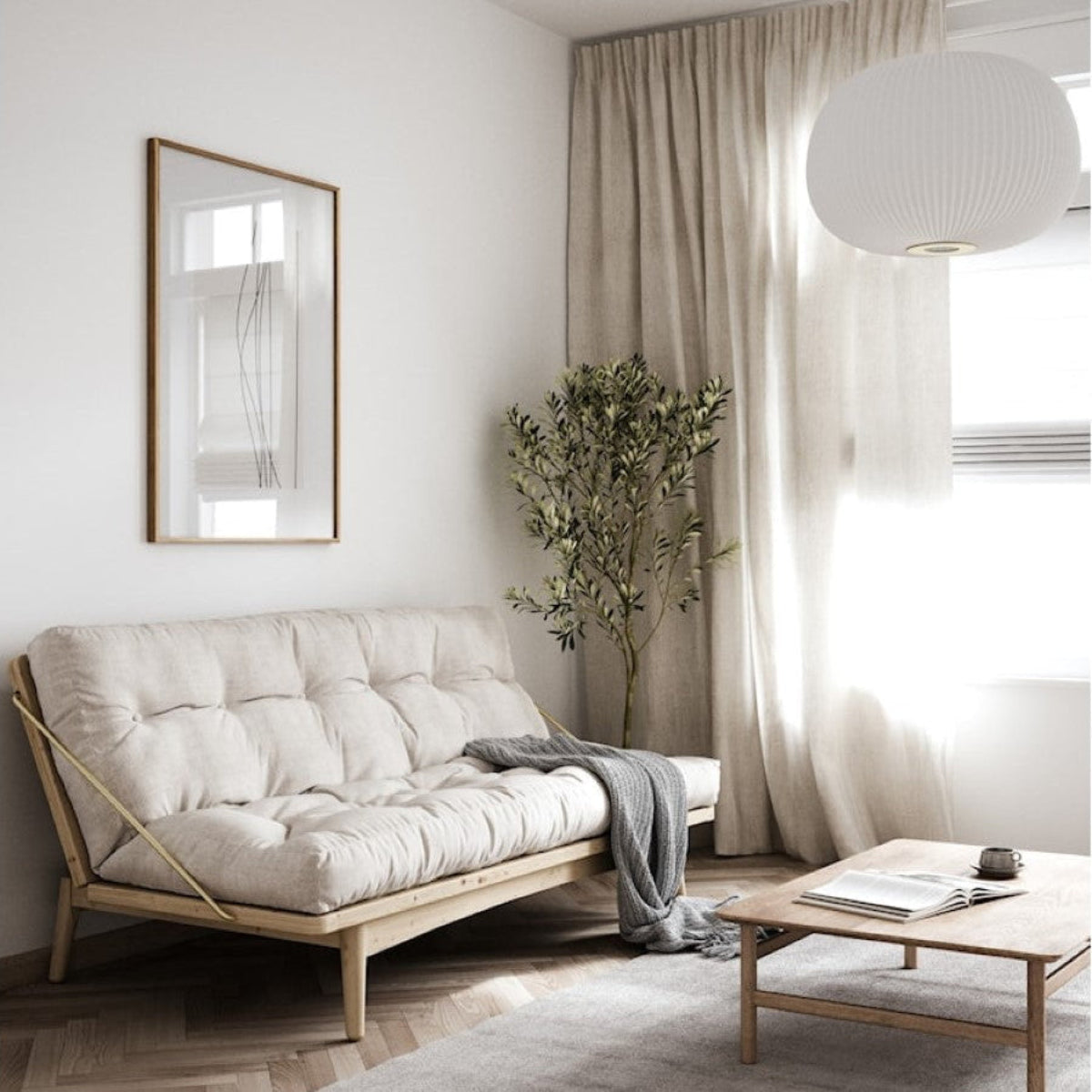 Rozkládací pohovka FOLK je pohovka a postel v jednom.